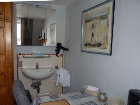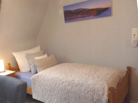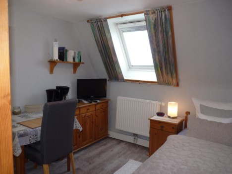 Das Einzelzimmer befindet sich im Obergeschoss, Richtung Norden, und ist über eine Treppe zu erreichen.