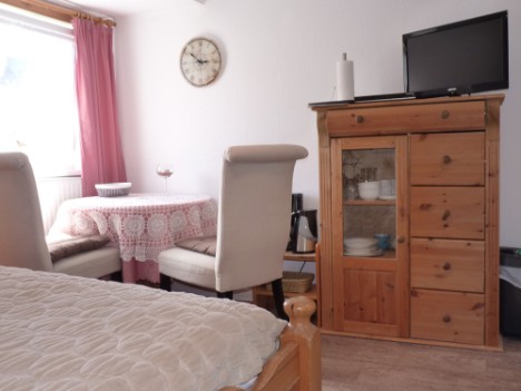 Tisch und Stühlen) auch mit einem Flachbildfernseher, einer Kaffeemaschine,